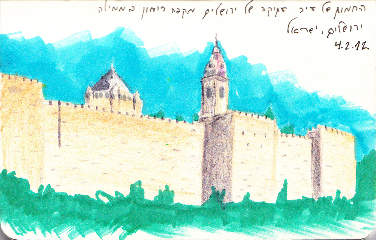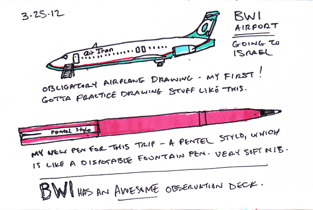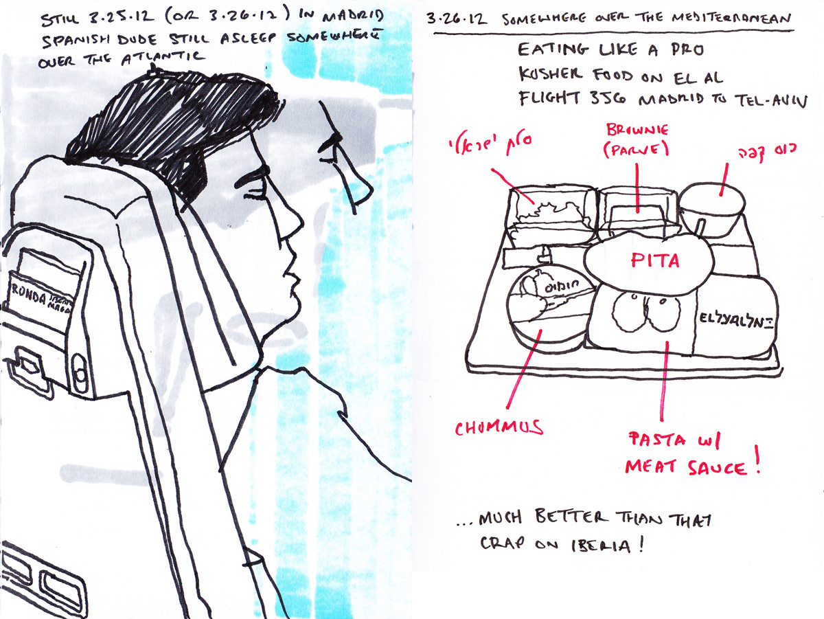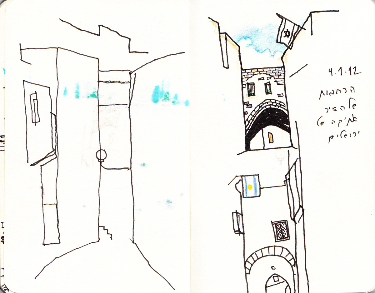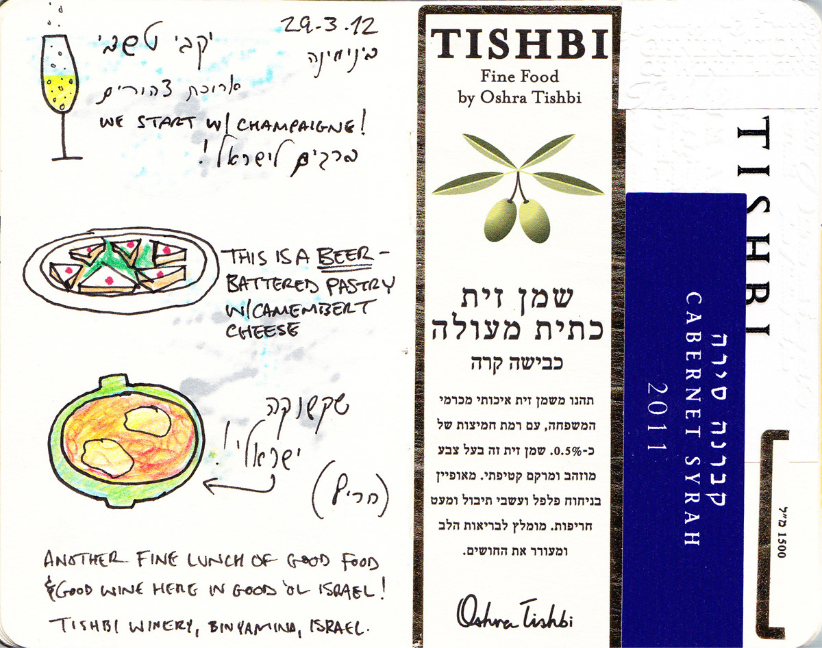 I've always been a fan of travel sketching, and on a 2012 trip to Israel, I decided to capture my favorite place in the world through a sketchbook. Using a 3" x 5" travel journal, a 4" x 6" sketchbook, and an array of markers, pens, and colored pencils, I focused primarily on Israel's wonderful foods, world-class wines, and their phenomenal craft beer scene.