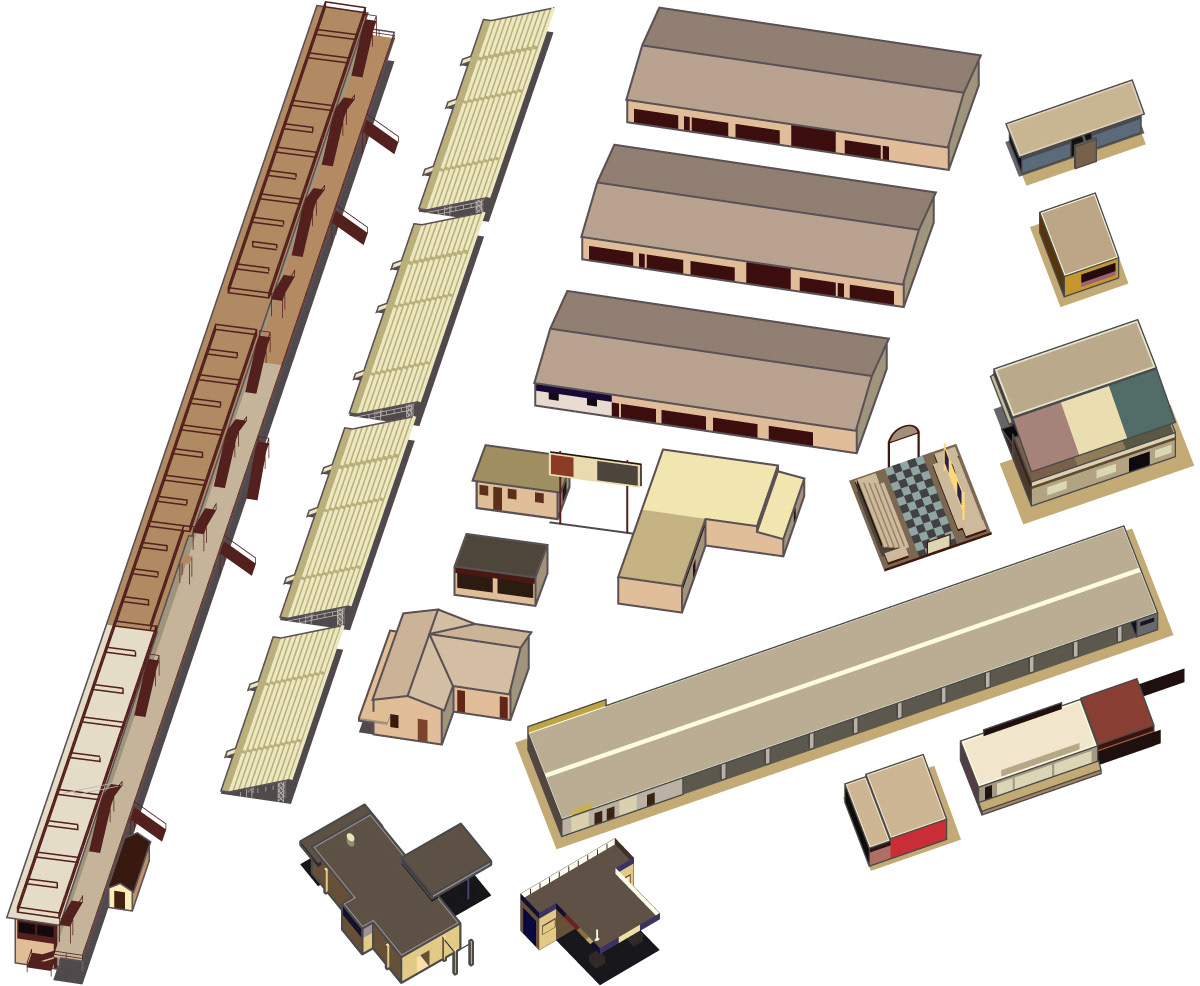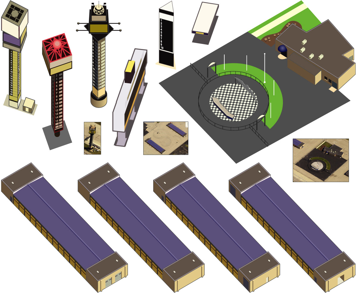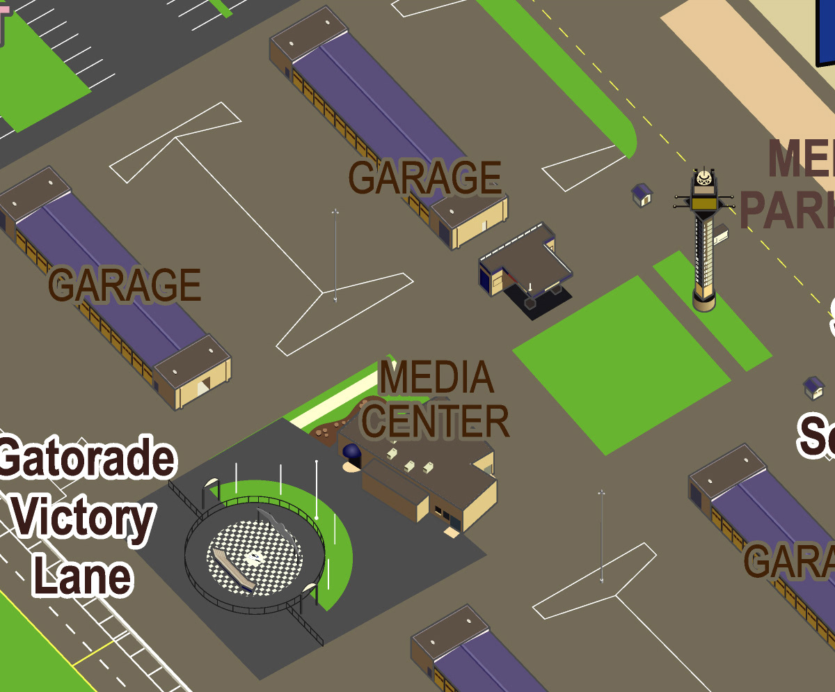 This illustrated map of the Chicagoland Speedway was one of a series of maps produced by the The Map Network for NASCAR, showcasing TMN's new offering of illustrated 3D maps for interactive online visitor guides. This was TMN's (and mine) first foray into isometric illustration for mapping. All elements were built upon 2D NAVTEQ base maps, and all digital rendering was done solely in Adobe Illustrator.